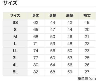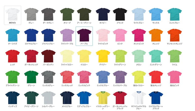 Tシャツサイズと色*